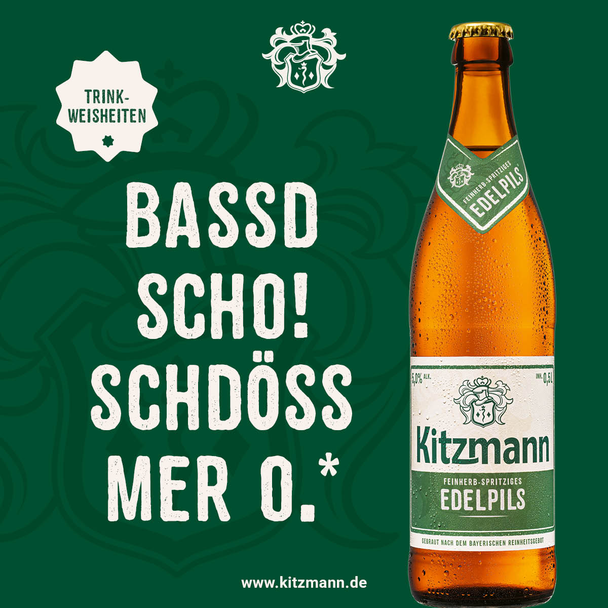 Mehr erfahren: * FRÄNKISCH FÜR: Sehr gut. Stoßen wir an.Manchmal braucht es keine großen Worte. Ein Blick, ein Lächeln, ein Kitzmann Pils. Und dann heißt es einfach: Bassd scho.